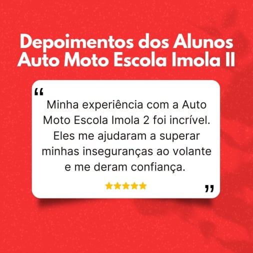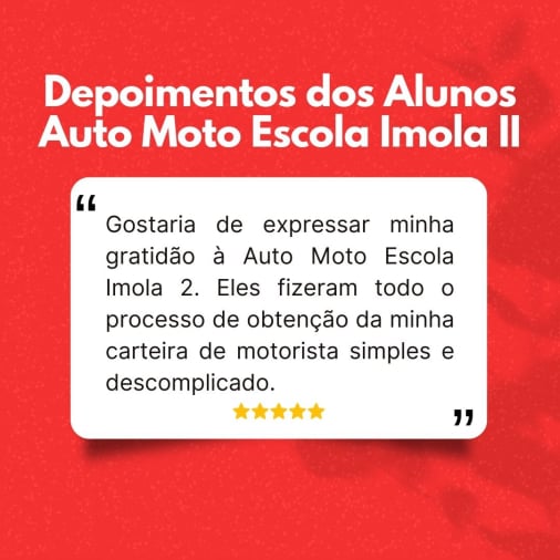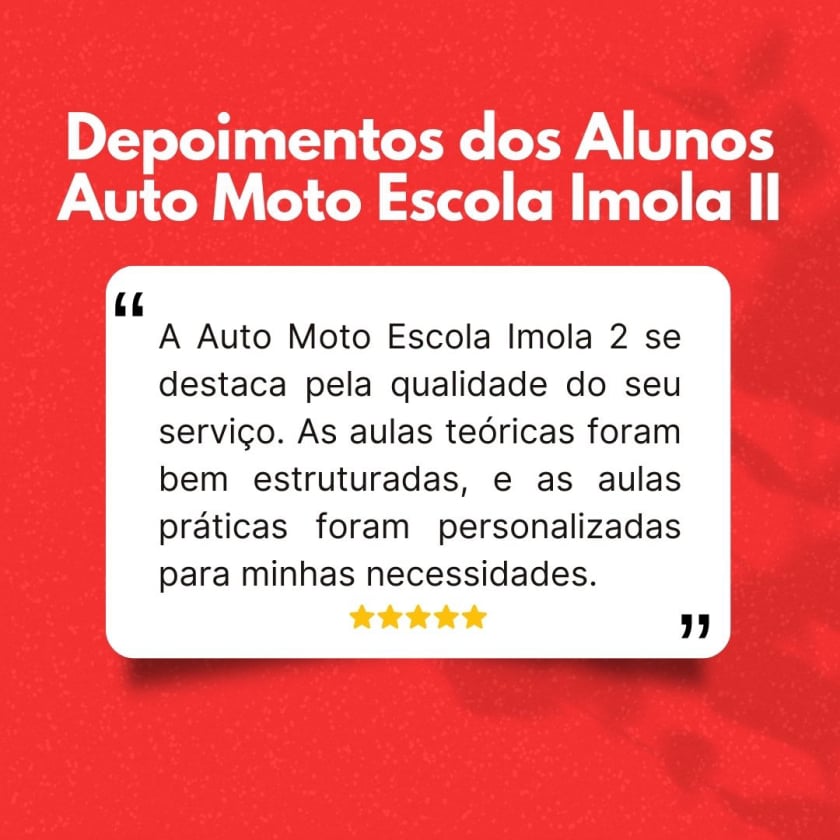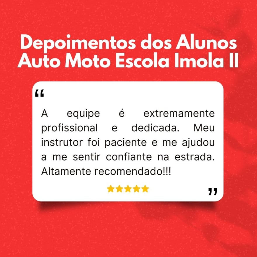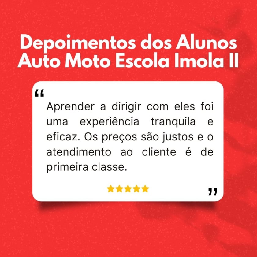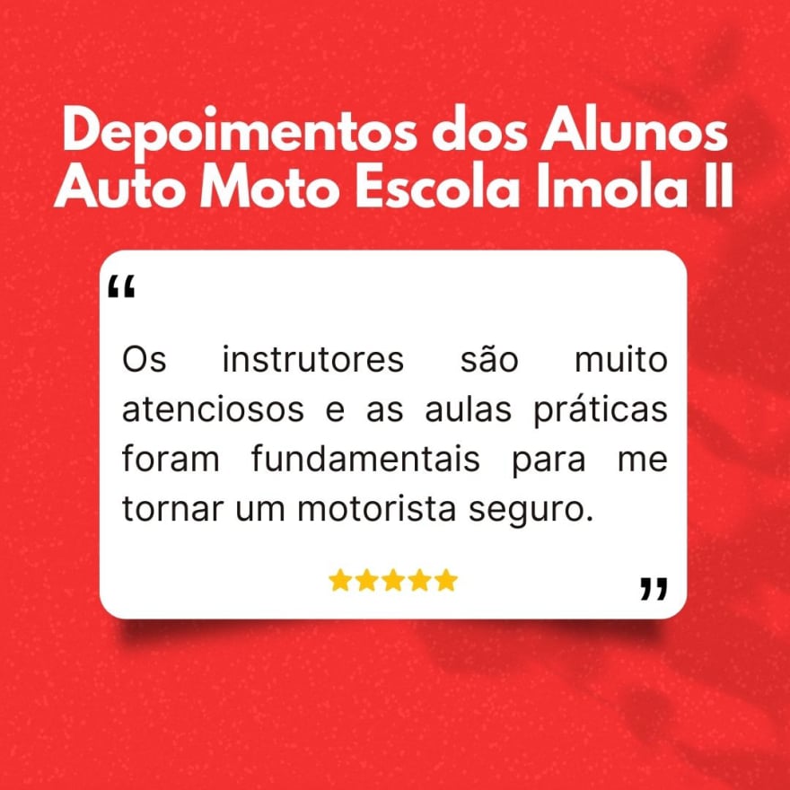 Nós da Auto Moto Escola Imola II, estamos orgulhosos de ser a escolha número um dos alunos que buscam aprender a dirigir de forma segura e eficiente. Oferecemos instrutores experientes, flexibilidade de horários, preços competitivos e um histórico comprovado de resultados para você se tornar um motorista.